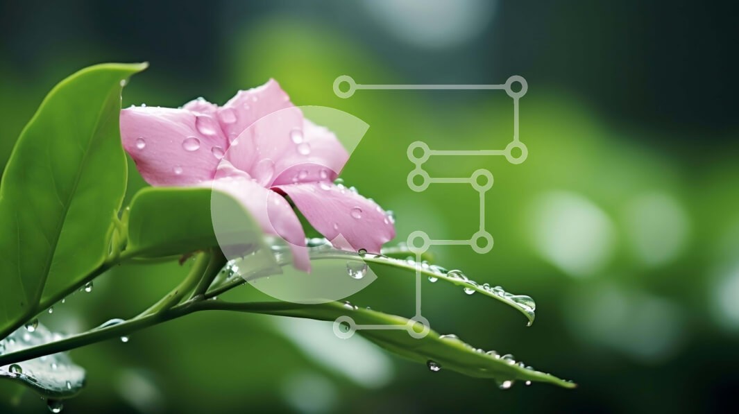 Υπάρχει δυνατότητα προσωποποίησης με δική σας φωτογραφία και προσαρμογής διαστάσεων κατόπιν παραγγελίας. Το συγεκεριμενο puzzle παρουσιαζει Αυτή η εικόνα παρουσιάζει ένα ροζ λουλούδι με σταγονίδια νερού στα πέταλά του. Το λουλούδι βρίσκεται στο στέλεχος ενός άγνωστου φυτού, γεγονός που μπορεί να υποδηλώνει ότι έχει ποτιστεί πρόσφατα. Υπάρχουν επίσης πράσινα φύλλα που περιβάλλουν το λουλούδι, παρέχοντας επιπλέον οπ