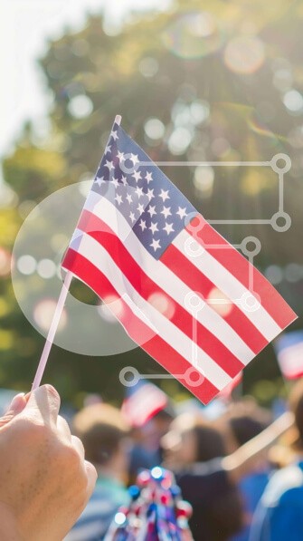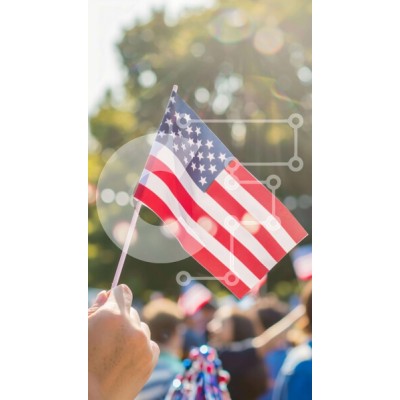 Υπάρχει δυνατότητα προσωποποίησης με δική σας φωτογραφία και προσαρμογής διαστάσεων κατόπιν παραγγελίας. Το συγεκεριμενο Puzzle 10x10 cm – 25 κομμ παρουσιαζει Η εικόνα απεικονίζει ένα άτομο να κρατά μια αμερικανική σημαία, να γιορτάζει ένα πατριωτικό γεγονός. Αρκετά άτομα βρίσκονται στο σημείο, υποδηλώνοντας εορταστική συγκέντρωση. Ένα μοναδικό Puzzle 10x10 cm – 25 κομμπου συνδυάζει ποιότητα, αισ
