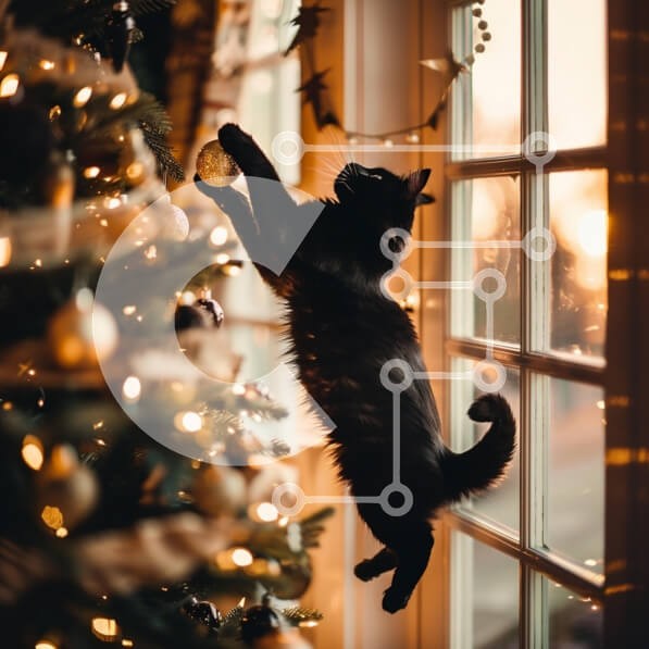 Υπάρχει δυνατότητα προσωποποίησης με δική σας φωτογραφία και προσαρμογής διαστάσεων κατόπιν παραγγελίας. Το συγεκεριμενο Puzzle 10x10 cm – 25 κομμ παρουσιαζει Μια παιχνιδιάρικη μαύρη γάτα χοροπηδά προς ένα χρυσό στολίδι που κρέμεται σε ένα χριστουγεννιάτικο δέντρο. Τα ζεστά χρυσά φώτα του δέντρου δημιουργούν μια ζεστή ατμόσφαιρα, ενώ το ηλιοβασίλεμα διέρχεται από τα παράθυρα, φωτίζοντας τη σκηνή μ