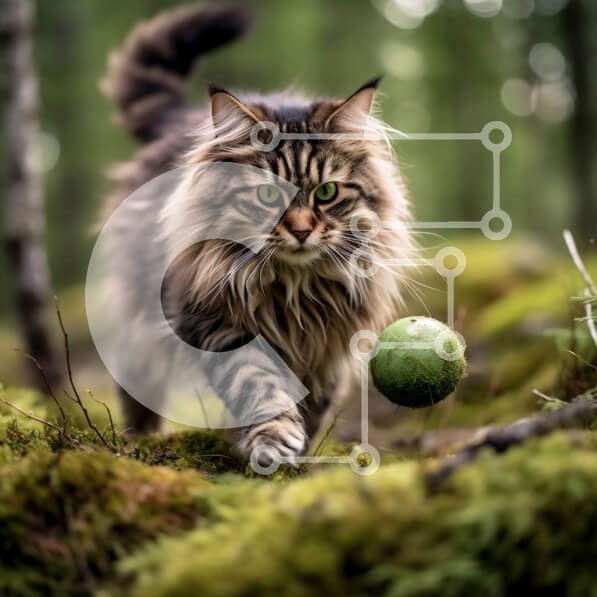 Υπάρχει δυνατότητα προσωποποίησης με δική σας φωτογραφία και προσαρμογής διαστάσεων κατόπιν παραγγελίας. Το συγεκεριμενο Puzzle 10x10 cm – 25 κομμ παρουσιαζει Αυτή η εικόνα παρουσιάζει μια μακρυμάλλη γάτα που περπατά μέσα σε ένα δάσος με βρύα και φύλλα στο έδαφος. Η γάτα κοιτάζει κάτι στο έδαφος μπροστά της, προσθέτοντας μια αίσθηση περιέργειας και ίντριγκας στη σκηνή. Το καταπράσινο του δάσους δη
