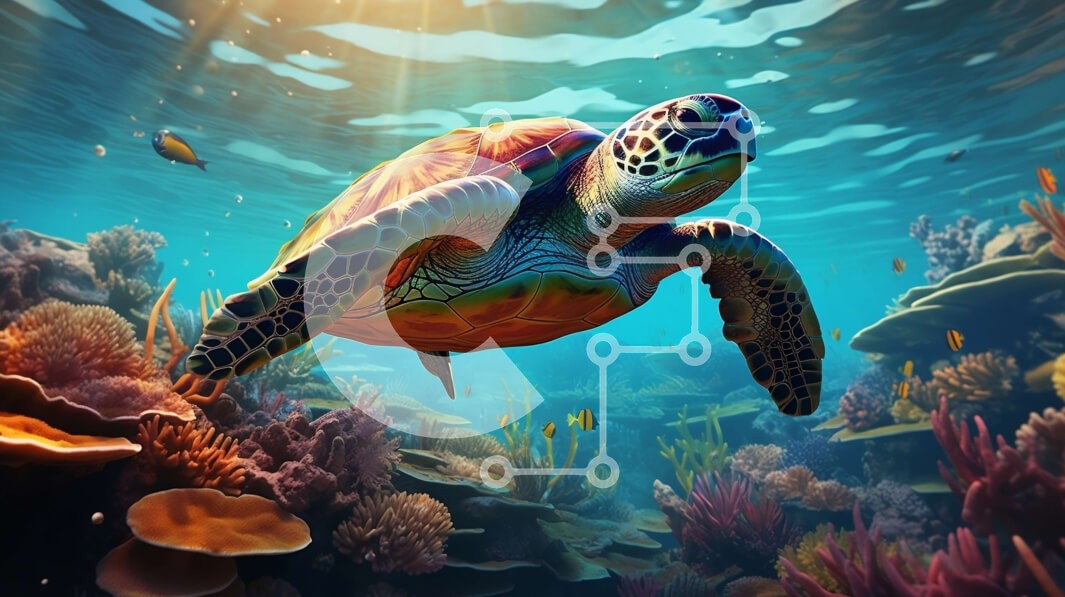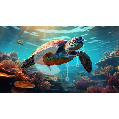 Υπάρχει δυνατότητα προσωποποίησης με δική σας φωτογραφία και προσαρμογής διαστάσεων κατόπιν παραγγελίας. Το συγεκεριμενο puzzle παρουσιαζει Αυτή η εικόνα παρουσιάζει μια πράσινη θαλάσσια χελώνα που κολυμπά σε έναν κοραλλιογενή ύφαλο που περιβάλλεται από διάφορα ψάρια και άλλα θαλάσσια πλάσματα. Τα ζωηρά χρώματα του κοραλλιογενούς υφάλου και το αφρώδες νερό δημιουργούν μια γαλήνια ατμόσφαιρα. Το φως του ήλιου λάμπε