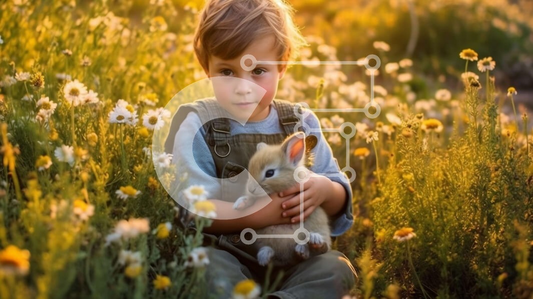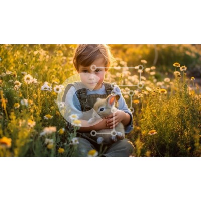 Υπάρχει δυνατότητα προσωποποίησης με δική σας φωτογραφία και προσαρμογής διαστάσεων κατόπιν παραγγελίας. Το συγεκεριμενο puzzle παρουσιαζει Αυτή η εικόνα είναι ενός νεαρού αγοριού που κάθεται σε ένα χωράφι περιτριγυρισμένο από αγριολούλουδα, κρατώντας ένα μικρό κουνέλι στην αγκαλιά του. Φοράει καρό πουκάμισο και φόρμα και έχει μια άτακτη έκφραση στο πρόσωπό του. Το κουνέλι χτυπάει το κεφάλι του στο στήθος του. Ο ή