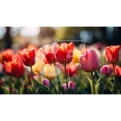 Υπάρχει δυνατότητα προσωποποίησης με δική σας φωτογραφία και προσαρμογής διαστάσεων κατόπιν παραγγελίας. Το συγεκεριμενο puzzle παρουσιαζει Αυτή η εικόνα παρουσιάζει ένα χωράφι με πολύχρωμες τουλίπες σε πλήρη άνθιση. Τα λουλούδια είναι ένα μείγμα κόκκινου, πορτοκαλί και κίτρινου, με ανοιχτά πέταλα που ταλαντεύονται στο αεράκι. Ο ήλιος λάμπει έντονα, ρίχνοντας μια ζεστή λάμψη στη σκηνή. Οι τουλίπες μεγαλώνουν σε σε