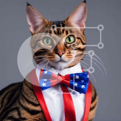 Υπάρχει δυνατότητα προσωποποίησης με δική σας φωτογραφία και προσαρμογής διαστάσεων κατόπιν παραγγελίας. Το συγεκεριμενο Puzzle 10x10 cm – 25 κομμ παρουσιαζει Η εικόνα απεικονίζει μια γάτα της Βεγγάλης που φορά ένα παπιγιόν με θέμα την αμερικανική σημαία. Τα μάτια της γάτας είναι λαμπερά και φαίνεται να απολαμβάνει την προσοχή του ιδιοκτήτη της. Είναι πιθανό ότι η γάτα φροντίζεται από κάποιο κοντι
