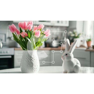 | Όνομα Προϊόντος | Intra Συλλεκτικό Ξύλινο Παζλ Plywood 4mm - Λευκό κουνέλι και ροζ τουλίπες στο τραπέζι της κουζίνας Σε Ξύλινο Κουτί - Διαστάσεις: 10x10 cm – 25 κομμάτια |