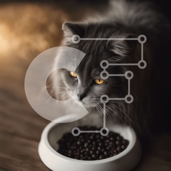 Υπάρχει δυνατότητα προσωποποίησης με δική σας φωτογραφία και προσαρμογής διαστάσεων κατόπιν παραγγελίας. Το συγεκεριμενο Puzzle 10x10 cm – 25 κομμ παρουσιαζει Αυτή η εικόνα παρουσιάζει μια γκρίζα γάτα που κάθεται μπροστά από ένα μπολ με τροφή για γάτες σε ένα ξύλινο τραπέζι. Η γάτα έχει κίτρινα μάτια και κοιτάζει κάτω το φαγητό στο μπολ. Η γούνα του είναι αφράτη και τα μουστάκια του μακριά. Το μπο