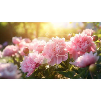 Υπάρχει δυνατότητα προσωποποίησης με δική σας φωτογραφία και προσαρμογής διαστάσεων κατόπιν παραγγελίας. Το συγεκεριμενο puzzle παρουσιαζει Αυτή η εικόνα παρουσιάζει μια ομάδα από ροζ παιώνιες σε πλήρη άνθιση, με τον ήλιο να λάμπει έντονα πίσω τους. Τα λουλούδια αναπτύσσονται έξω από το έδαφος, υποδεικνύοντας ότι είναι μέρος ενός κήπου με λουλούδια. Γύρω από τα λουλούδια υπάρχουν πολλά πράσινα φύλλα, που υποδηλώνο