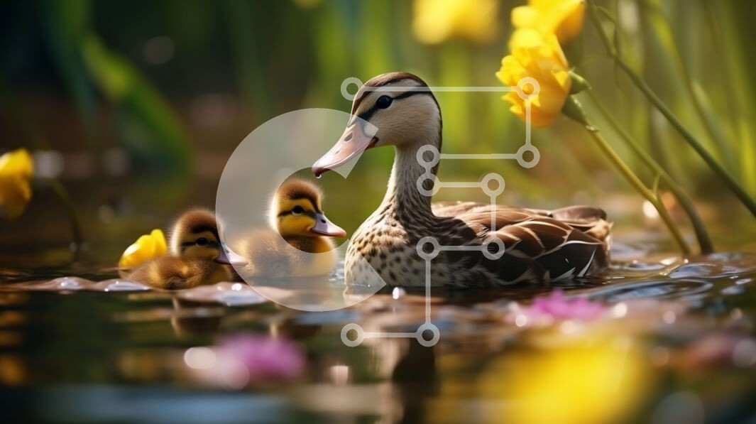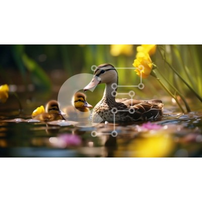 Υπάρχει δυνατότητα προσωποποίησης με δική σας φωτογραφία και προσαρμογής διαστάσεων κατόπιν παραγγελίας. Το συγεκεριμενο puzzle παρουσιαζει Αυτή η εικόνα απαθανατίζει μια μητέρα πάπια να κολυμπά σε μια γαλήνια λιμνούλα με δύο μικρά παπάκια να την ακολουθούν από κοντά. Το νερό είναι καθαρό και ο ήλιος λάμπει, δημιουργώντας ένα γαλήνιο και όμορφο σκηνικό. Κίτρινα άνθη ασφόδελου διακρίνονται στο βάθος, προσθέτοντας μ