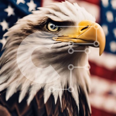 Υπάρχει δυνατότητα προσωποποίησης με δική σας φωτογραφία και προσαρμογής διαστάσεων κατόπιν παραγγελίας. Το συγεκεριμενο Puzzle 10x10 cm – 25 κομμ παρουσιαζει Η εικόνα παρουσιάζει ένα κοντινό πλάνο ενός αετού μπροστά από την αμερικανική σημαία. Το κεφάλι του πουλιού είναι γερμένο στο πλάι, υποδηλώνοντας ότι είναι στραμμένο μακριά από την κάμερα. Φαίνεται επίσης να κοιτάζει απευθείας τον θεατή, κάτ