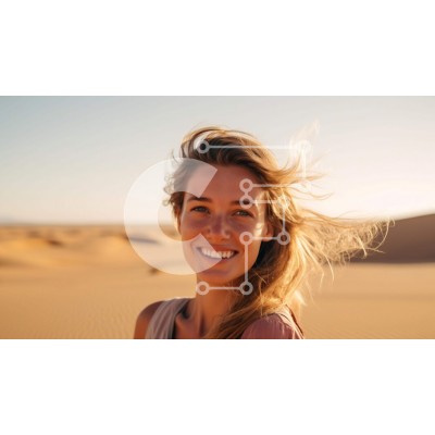 Υπάρχει δυνατότητα προσωποποίησης με δική σας φωτογραφία και προσαρμογής διαστάσεων κατόπιν παραγγελίας. Το συγεκεριμενο puzzle παρουσιαζει Αυτή η εικόνα παρουσιάζει μια νεαρή γυναίκα να χαμογελά στην κάμερα ενώ στέκεται στην έρημο. Περιβάλλεται από αμμόλοφους και φοίνικες, δημιουργώντας μια οπτικά μαγευτική σκηνή. Η έκφραση της γυναίκας υποδηλώνει ότι διασκεδάζει ή ασχολείται με κάποια ψυχαγωγική δραστηριότητα. Τ