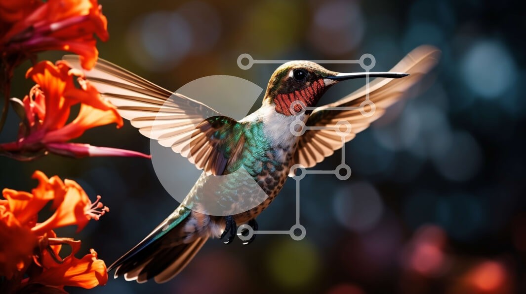 Υπάρχει δυνατότητα προσωποποίησης με δική σας φωτογραφία και προσαρμογής διαστάσεων κατόπιν παραγγελίας. Το συγεκεριμενο puzzle παρουσιαζει Αυτή η εικόνα παρουσιάζει ένα κολίβριο εν πτήσει, τοποθετημένο μπροστά από ένα έντονο κόκκινο λουλούδι. Τα ζωηρά φτερά και το μακρύ ράμφος του κολιμπρί είναι ευδιάκριτα, καθώς αιωρείται με τα φτερά του ανοιχτά και την ουρά του. Το εστιακό σημείο της εικόνας είναι το όμορφο κόκ