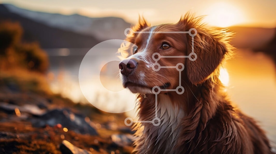 Υπάρχει δυνατότητα προσωποποίησης με δική σας φωτογραφία και προσαρμογής διαστάσεων κατόπιν παραγγελίας. Το συγεκεριμενο puzzle παρουσιαζει Αυτή η εικόνα παρουσιάζει έναν καφέ και λευκό σκύλο να στέκεται σε μια βραχώδη ακτή δίπλα σε ένα υδάτινο σώμα. Ο σκύλος κοιτάζει μακριά με τα αυτιά του ψηλά και την ουρά του να κουνάει. Ο ήλιος δύει πίσω από το σκυλί, ρίχνοντας μια ζεστή λάμψη στη γούνα του και στο γύρω τοπίο.