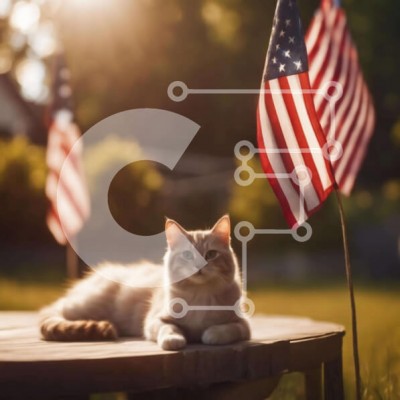 Υπάρχει δυνατότητα προσωποποίησης με δική σας φωτογραφία και προσαρμογής διαστάσεων κατόπιν παραγγελίας. Το συγεκεριμενο Puzzle 10x10 cm – 25 κομμ παρουσιαζει Αυτή η εικόνα παρουσιάζει μια γάτα ξαπλωμένη σε ένα υπαίθριο τραπέζι με δύο αμερικανικές σημαίες στο φόντο. Η γάτα φαίνεται χαλαρή και άνετη, υποδεικνύοντας την απόλαυσή της στο εξωτερικό περιβάλλον. Ένα μοναδικό Puzzle 10x10 cm – 25 κομμπο