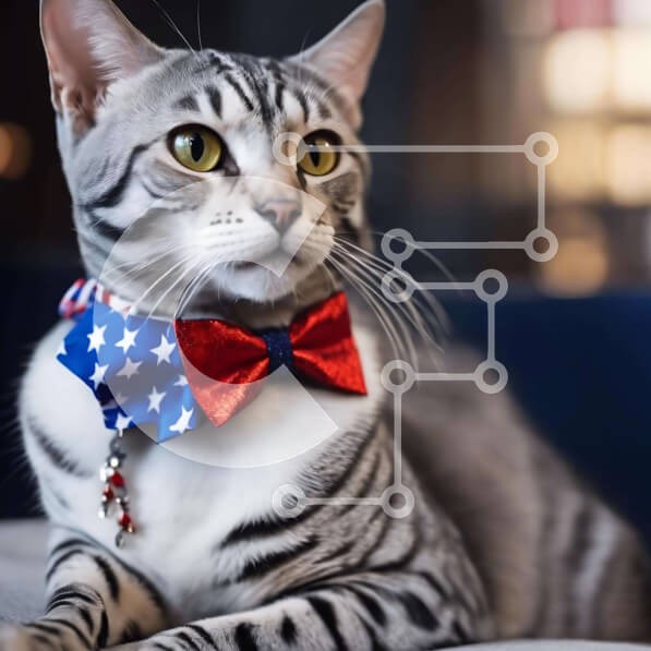 Υπάρχει δυνατότητα προσωποποίησης με δική σας φωτογραφία και προσαρμογής διαστάσεων κατόπιν παραγγελίας. Το συγεκεριμενο Puzzle 10x10 cm – 25 κομμ παρουσιαζει Η γάτα στην εικόνα φορά ένα κόκκινο, λευκό και μπλε παπιγιόν με σχέδιο αμερικανικής σημαίας. Φαίνεται να είναι χαλαρό και άνετο καθώς κάθεται στον καναπέ, ακουμπώντας πιθανώς το κεφάλι του σε ένα από τα μαξιλάρια. Μπορεί να υπάρχουν άλλες γά
