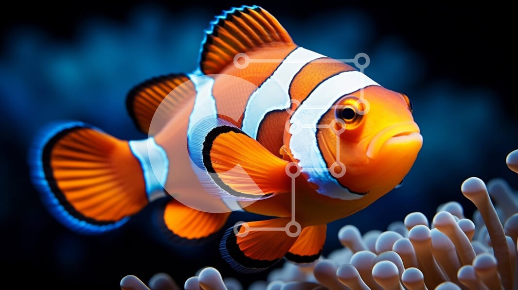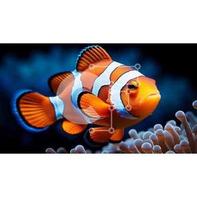 Υπάρχει δυνατότητα προσωποποίησης με δική σας φωτογραφία και προσαρμογής διαστάσεων κατόπιν παραγγελίας. Το συγεκεριμενο puzzle παρουσιαζει Αυτή η εικόνα δείχνει ένα πολύχρωμο ψάρι-κλόουν που κολυμπά στον ωκεανό. Το ψάρι-κλόουν είναι πορτοκαλί και λευκό με χαρακτηριστικές μαύρες ρίγες. Έχει μεγάλα μαύρα μάτια και μικρό στόμα. Το ψάρι-κλόουν φαίνεται ανάμεσα σε ένα κοπάδι μικρών ψαριών. Το φόντο είναι σκοτεινό και