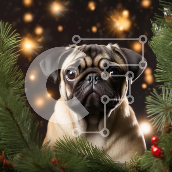 Υπάρχει δυνατότητα προσωποποίησης με δική σας φωτογραφία και προσαρμογής διαστάσεων κατόπιν παραγγελίας. Το συγεκεριμενο Puzzle 10x10 cm – 25 κομμ παρουσιαζει Η εικόνα παρουσιάζει ένα αξιολάτρευτο σκυλί πατημασιά πλαισιωμένο από κλαδιά πεύκου, δημιουργώντας μια εορταστική ατμόσφαιρα. Το πατημασιά έχει μεγάλα, εκφραστικά μάτια και ελαφρώς αυλακωμένο φρύδι, δίνοντάς του μια περίεργη και αγαπησιάρικη