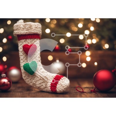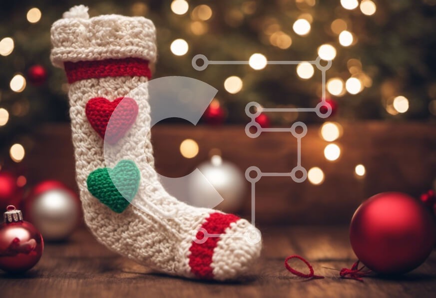Υπάρχει δυνατότητα προσωποποίησης με δική σας φωτογραφία και προσαρμογής διαστάσεων κατόπιν παραγγελίας. Το συγεκεριμενο Puzzle 10x10 cm – 25 κομμ παρουσιαζει Αυτή η εικόνα δείχνει μια κροσέ κάλτσα με κόκκινες και λευκές καρδιές τοποθετημένες πάνω από στολίδια. Είναι μια γιορτινή και γοητευτική διακόσμηση διακοπών που μπορεί να φέρει ζεστασιά και χαρά σε κάθε σπίτι. Το ξύλινο φόντο προσθέτει μια ρ