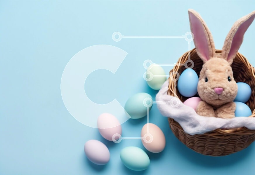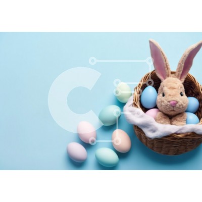 Υπάρχει δυνατότητα προσωποποίησης με δική σας φωτογραφία και προσαρμογής διαστάσεων κατόπιν παραγγελίας. Το συγεκεριμενο Puzzle 10x10 cm – 25 κομμ παρουσιαζει Αυτή η εικόνα παρουσιάζει ένα ψάθινο καλάθι γεμάτο με πολύχρωμα πασχαλινά αυγά και ένα γεμιστό λαγουδάκι. Το καλάθι είναι διακοσμημένο με πασχαλινές διακοσμήσεις σε παστέλ χρώματα και είναι τοποθετημένο σε ένα ζωηρό μπλε φόντο, δημιουργώντας