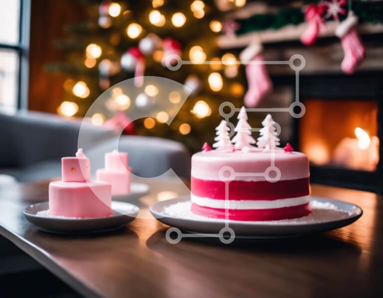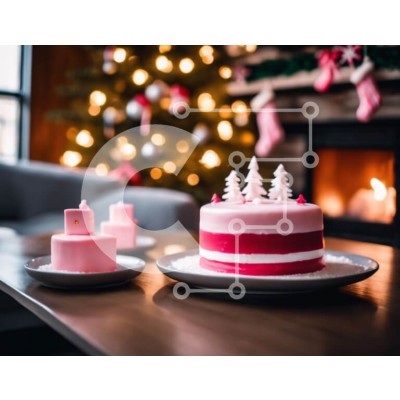 Υπάρχει δυνατότητα προσωποποίησης με δική σας φωτογραφία και προσαρμογής διαστάσεων κατόπιν παραγγελίας. Το συγεκεριμενο Puzzle 10x10 cm – 25 κομμ παρουσιαζει Αυτή η εικόνα παρουσιάζει μια εορταστική σκηνή με ένα τραπέζι με δύο πιάτα κέικ. Η τούρτα είναι ροζ χρώματος και διακοσμημένη με νιφάδες χιονιού, ενώ τα κεριά είναι λευκά και φαίνεται να έχουν ανάψει πρόσφατα. Στο βάθος, υπάρχει ένα τζάκι πο