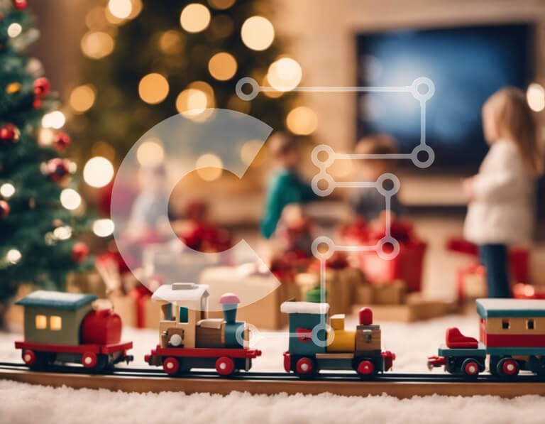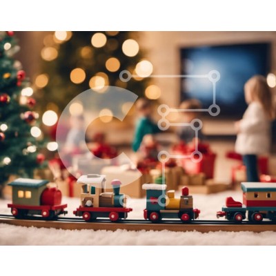 Υπάρχει δυνατότητα προσωποποίησης με δική σας φωτογραφία και προσαρμογής διαστάσεων κατόπιν παραγγελίας. Το συγεκεριμενο Puzzle 10x10 cm – 25 κομμ παρουσιαζει Αυτή η εικόνα παρουσιάζει ένα τρενάκι παιχνιδιών σε φόντο, με πολλά παιδιά να παίζουν γύρω του. Η σκηνή στολίζεται με δώρα και στολίδια, υποδηλώνοντας μια εορταστική χριστουγεννιάτικη γιορτή. Τα παιδιά ασχολούνται με χαρά με τα παιχνίδια καθ