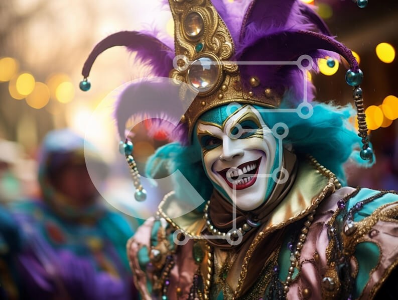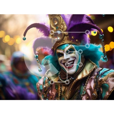 Υπάρχει δυνατότητα προσωποποίησης με δική σας φωτογραφία και προσαρμογής διαστάσεων κατόπιν παραγγελίας. Το συγεκεριμενο Puzzle 10x10 cm – 25 κομμ παρουσιαζει Αυτή η εικόνα παρουσιάζει ένα άτομο με περίτεχνη αποκριάτικη ενδυμασία, που επιδεικνύει μια ζωντανή μάσκα στολισμένη με φτερά και κοσμήματα. Το άτομο χαμογελά πλατιά, αποπνέει χαρά και γλέντι τυπικά μιας αποκριάτικης γιορτής. Το φόντο είναι
