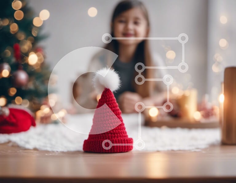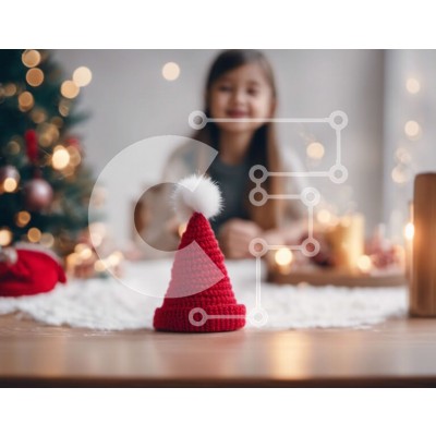 Υπάρχει δυνατότητα προσωποποίησης με δική σας φωτογραφία και προσαρμογής διαστάσεων κατόπιν παραγγελίας. Το συγεκεριμενο Puzzle 10x10 cm – 25 κομμ παρουσιαζει Αυτή η εικόνα απεικονίζει μια νεαρή κοπέλα να κάθεται σε ένα τραπέζι φαγητού, φορώντας ένα κόκκινο διακοσμημένο καπέλο Άγιου Βασίλη που τοποθετείται στην κορυφή του τραπεζιού. Στο βάθος, υπάρχει ένα χριστουγεννιάτικο δέντρο, που δείχνει ότι