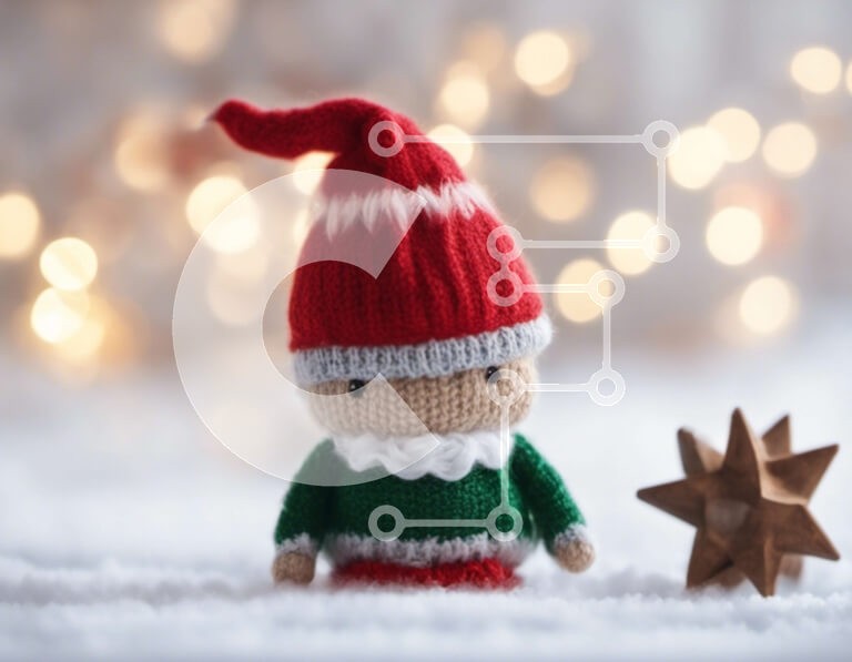 Υπάρχει δυνατότητα προσωποποίησης με δική σας φωτογραφία και προσαρμογής διαστάσεων κατόπιν παραγγελίας. Το συγεκεριμενο Puzzle 10x10 cm – 25 κομμ παρουσιαζει Αυτή η εικόνα παρουσιάζει μια εορταστική πλεκτή κούκλα ξωτικού δίπλα σε ένα διακοσμητικό αστέρι. Ο συνδυασμός χρωμάτων κόκκινου και πράσινου προσθέτει στο θέμα των διακοπών, ενώ το φόντο διαθέτει αστραφτερά φώτα, δημιουργώντας μια χαρούμενη