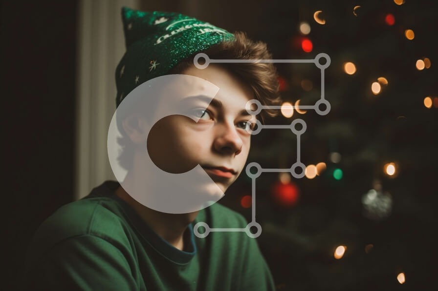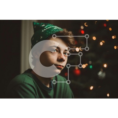 Υπάρχει δυνατότητα προσωποποίησης με δική σας φωτογραφία και προσαρμογής διαστάσεων κατόπιν παραγγελίας. Το συγεκεριμενο Puzzle 10x10 cm – 25 κομμ παρουσιαζει Αυτή η εικόνα παρουσιάζει ένα νεαρό αγόρι που φορά ένα πράσινο χριστουγεννιάτικο καπέλο, που κάθεται μπροστά από ένα χριστουγεννιάτικο δέντρο. Το αγόρι φαίνεται χαρούμενο και ικανοποιημένο και το δέντρο είναι γιορτινά στολισμένο με φώτα, στο