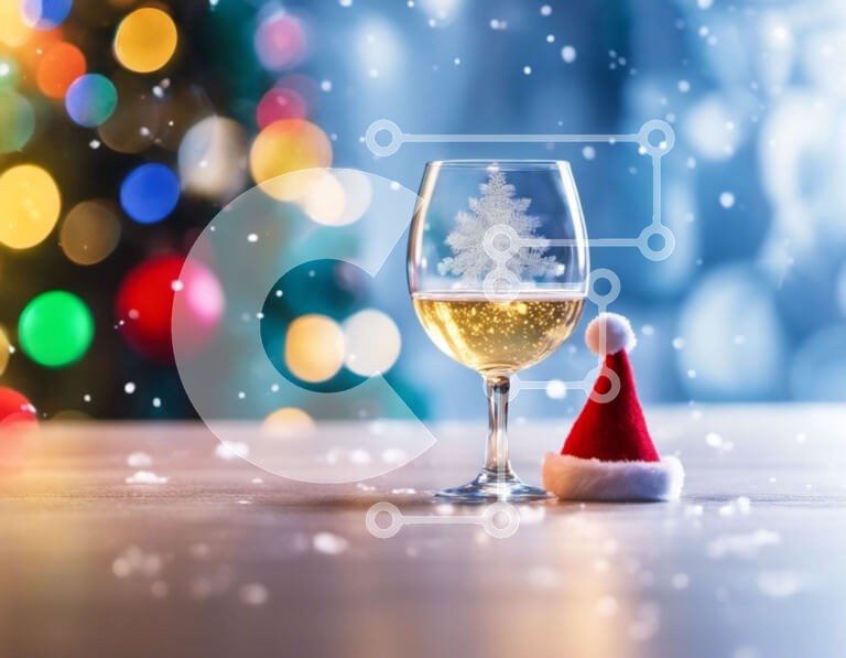 Υπάρχει δυνατότητα προσωποποίησης με δική σας φωτογραφία και προσαρμογής διαστάσεων κατόπιν παραγγελίας. Το συγεκεριμενο Puzzle 10x10 cm – 25 κομμ παρουσιαζει Αυτή η εικόνα δείχνει ένα ποτήρι λευκό κρασί τοποθετημένο πάνω από ένα διακοσμητικό χριστουγεννιάτικο δέντρο. Ένα καπέλο Άγιου Βασίλη είναι τοποθετημένο δίπλα στο ποτήρι, υποδηλώνοντας μια γιορτή κατά την περίοδο των γιορτών. Η παρουσία νιφά