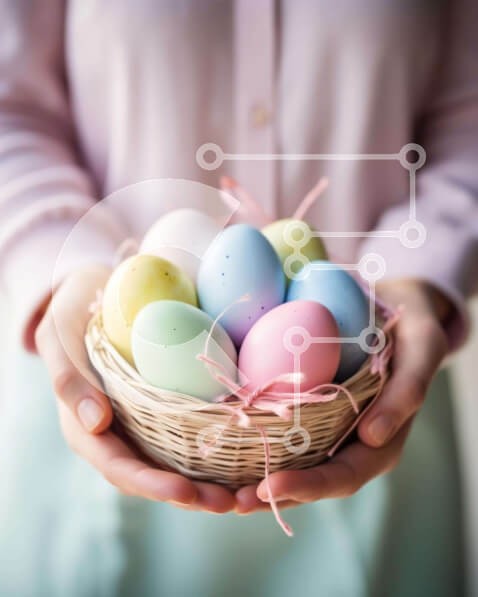 Υπάρχει δυνατότητα προσωποποίησης με δική σας φωτογραφία και προσαρμογής διαστάσεων κατόπιν παραγγελίας. Το συγεκεριμενο Puzzle 10x10 cm – 25 κομμ παρουσιαζει Αυτή η εικόνα απεικονίζει μια γυναίκα που κρατά ένα πασχαλινό καλάθι γεμάτο με πολύχρωμα αυγά, που συμβολίζει την παράδοση των δώρων κατά τη διάρκεια των διακοπών. Τα έντονα χρωματιστά αυγά προσθέτουν στη γιορτινή ατμόσφαιρα, δημιουργώντας έ
