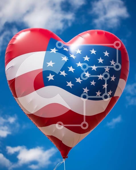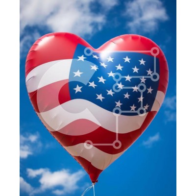 Υπάρχει δυνατότητα προσωποποίησης με δική σας φωτογραφία και προσαρμογής διαστάσεων κατόπιν παραγγελίας. Το συγεκεριμενο Puzzle 10x10 cm – 25 κομμ παρουσιαζει Η εικόνα παρουσιάζει ένα κόκκινο, λευκό και μπλε μπαλόνι σε σχήμα καρδιάς με σχέδιο αμερικανικής σημαίας στον ουρανό. Είναι πιθανό να είναι μέρος μιας εκδήλωσης για τον εορτασμό της 4ης Ιουλίου ή άλλης πατριωτικής γιορτής. Επιπλέον, μπορεί ν