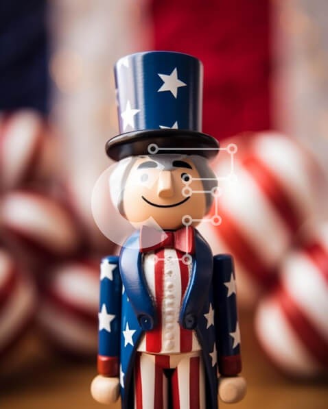 Υπάρχει δυνατότητα προσωποποίησης με δική σας φωτογραφία και προσαρμογής διαστάσεων κατόπιν παραγγελίας. Το συγεκεριμενο Puzzle 10x10 cm – 25 κομμ παρουσιαζει Η εικόνα απεικονίζει ένα ειδώλιο παιχνιδιού του θείου Σαμ, ντυμένο με στολή με θέμα την αμερικανική σημαία και στέκεται μπροστά σε κόκκινες, λευκές και μπλε μπάλες. Είναι πιθανό ότι το ειδώλιο κατασκευάστηκε για επερχόμενες γιορτές ή εκδηλώσ