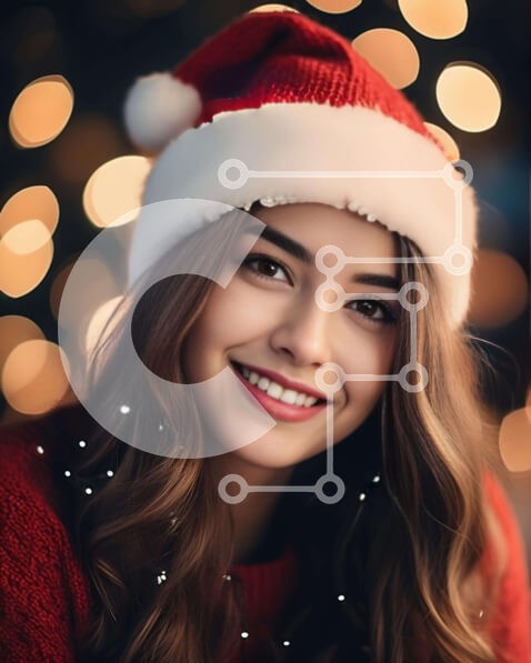 Υπάρχει δυνατότητα προσωποποίησης με δική σας φωτογραφία και προσαρμογής διαστάσεων κατόπιν παραγγελίας. Το συγεκεριμενο Puzzle 10x10 cm – 25 κομμ παρουσιαζει Αυτή η εικόνα παρουσιάζει μια νεαρή γυναίκα που φορά ένα καπέλο του Άγιου Βασίλη και χαμογελά στην κάμερα. Τα μακριά, σγουρά μαλλιά της συμπληρώνουν το κόκκινο χρώμα του πουλόβερ της, δημιουργώντας μια γιορτινή εμφάνιση. Στο βάθος, υπάρχουν