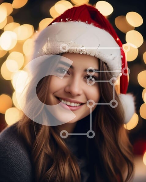 Υπάρχει δυνατότητα προσωποποίησης με δική σας φωτογραφία και προσαρμογής διαστάσεων κατόπιν παραγγελίας. Το συγεκεριμενο Puzzle 10x10 cm – 25 κομμ παρουσιαζει Αυτή η εικόνα παρουσιάζει μια νεαρή γυναίκα που φορά ένα καπέλο του Άγιου Βασίλη και χαμογελά στην κάμερα. Στέκεται μπροστά σε ένα φωτισμένο χριστουγεννιάτικο δέντρο, δημιουργώντας μια εορταστική ατμόσφαιρα. Τα μαλλιά της γυναίκας είναι χτεν