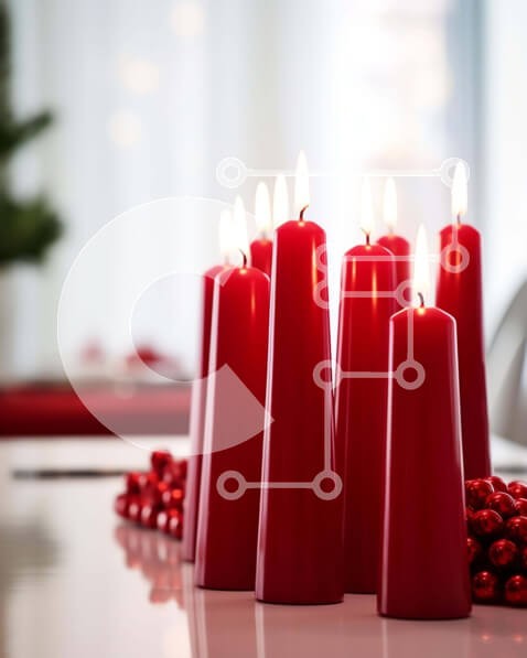 Υπάρχει δυνατότητα προσωποποίησης με δική σας φωτογραφία και προσαρμογής διαστάσεων κατόπιν παραγγελίας. Το συγεκεριμενο Puzzle 10x10 cm – 25 κομμ παρουσιαζει Αυτή η εικόνα παρουσιάζει ένα ανάποδο χριστουγεννιάτικο δέντρο με μια δημιουργική ανατροπή. Το δέντρο αποτελείται από κόκκινα κεριά τοποθετημένα σε σχήμα δέντρου, με κόκκινες μπάλες τοποθετημένες στην κορυφή. Το δωμάτιο είναι διακοσμημένο με