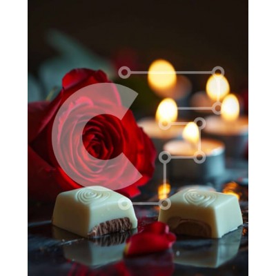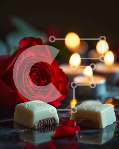 Υπάρχει δυνατότητα προσωποποίησης με δική σας φωτογραφία και προσαρμογής διαστάσεων κατόπιν παραγγελίας. Το συγεκεριμενο Puzzle 10x10 cm – 25 κομμ παρουσιαζει Η εικόνα παρουσιάζει δύο λευκές καραμέλες σοκολάτας, ένα κόκκινο τριαντάφυλλο και πολλά κεριά στο βάθος. Αυτά τα στοιχεία υποδηλώνουν ότι η σκηνή είναι γεμάτη ρομαντισμό και γλυκύτητα, κατάλληλη για ρομαντικές γιορτές όπως η Ημέρα του Αγίου