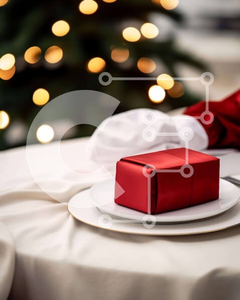 Υπάρχει δυνατότητα προσωποποίησης με δική σας φωτογραφία και προσαρμογής διαστάσεων κατόπιν παραγγελίας. Το συγεκεριμενο Puzzle 10x10 cm – 25 κομμ παρουσιαζει Αυτή η εικόνα απεικονίζει ένα χριστουγεννιάτικο τραπέζι με ένα λευκό πιάτο που κρατά δύο ασημένια πιρούνια και σκεύη. Ένα κόκκινο κουτί δώρου τοποθετείται πάνω από το πιάτο, ενώ ένα διακοσμητικό χριστουγεννιάτικο δέντρο χρησιμεύει ως φόντο.