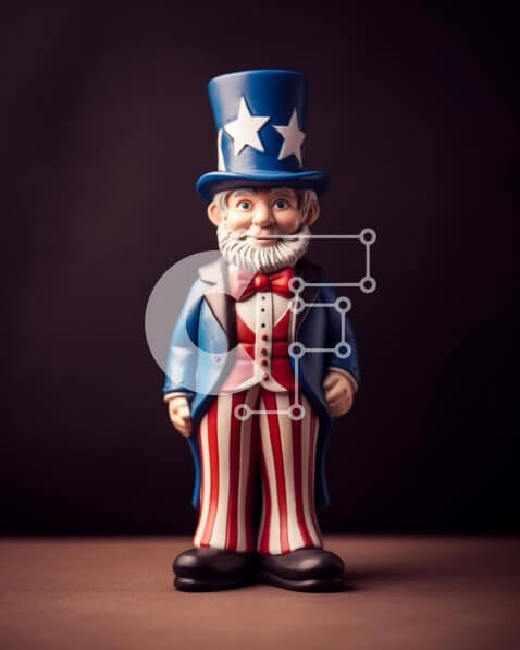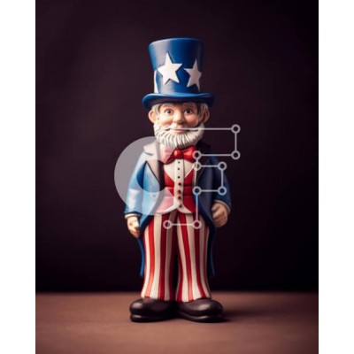 Υπάρχει δυνατότητα προσωποποίησης με δική σας φωτογραφία και προσαρμογής διαστάσεων κατόπιν παραγγελίας. Το συγεκεριμενο Puzzle 10x10 cm – 25 κομμ παρουσιαζει Αυτή η εικόνα παρουσιάζει ένα ειδώλιο παιχνιδιού του θείου Σαμ ντυμένο με μια στολή με θέμα την αμερικανική σημαία. Το ειδώλιο απεικονίζεται όρθιο, με τα χέρια στους γοφούς και τα πόδια ακουμπισμένα στο έδαφος. Συμβολίζει τα πατριωτικά αισθή