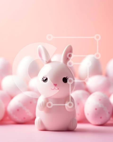 Υπάρχει δυνατότητα προσωποποίησης με δική σας φωτογραφία και προσαρμογής διαστάσεων κατόπιν παραγγελίας. Το συγεκεριμενο Puzzle 10x10 cm – 25 κομμ παρουσιαζει Αυτή η εικόνα παρουσιάζει ένα λευκό ειδώλιο κουνελιού που κάθεται ανάμεσα σε ροζ και λευκά αυγά, ιδανικό για πασχαλινές διακοσμήσεις ή ως αυτόνομο διακοσμητικό κομμάτι. Κατάλληλο τόσο για εμπορική όσο και για μη εμπορική χρήση. Ένα μοναδικό