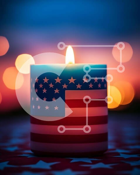 Υπάρχει δυνατότητα προσωποποίησης με δική σας φωτογραφία και προσαρμογής διαστάσεων κατόπιν παραγγελίας. Το συγεκεριμενο Puzzle 10x10 cm – 25 κομμ παρουσιαζει Η εικόνα δείχνει ένα κερί στολισμένο με σχέδιο αμερικανικής σημαίας, φωτισμένο στο βάθος. Αυτό το πατριωτικό κερί είναι ιδανικό για τον εορτασμό εκδηλώσεων όπως η 4η Ιουλίου ή άλλες εορταστικές περιστάσεις. Μπορεί να είναι μια διακοσμητική π
