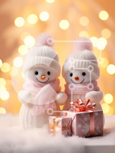Υπάρχει δυνατότητα προσωποποίησης με δική σας φωτογραφία και προσαρμογής διαστάσεων κατόπιν παραγγελίας. Το συγεκεριμενο Puzzle 10x10 cm – 25 κομμ παρουσιαζει Η εικόνα παρουσιάζει δύο αξιολάτρευτους χιονάνθρωπους στολισμένους με λευκά καπέλα και ροζ κασκόλ, να χαμογελούν χαρούμενα. Βρίσκονται σε μια χειμωνιάτικη σκηνή που περιβάλλεται από απαλό λευκό χιόνι και μια όμορφα τυλιγμένη συσκευασία δώρου