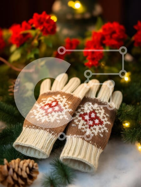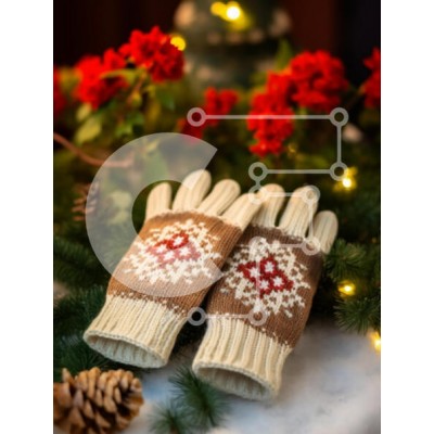 Υπάρχει δυνατότητα προσωποποίησης με δική σας φωτογραφία και προσαρμογής διαστάσεων κατόπιν παραγγελίας. Το συγεκεριμενο Puzzle 10x10 cm – 25 κομμ παρουσιαζει Αυτή η εικόνα παρουσιάζει ένα ζευγάρι ζεστά πλεκτά γάντια τοποθετημένα σε μια επιφάνεια στολισμένη με εορταστικές διακοσμήσεις. Τα γάντια έχουν μια ζεστή χρωματική παλέτα, που αναδεικνύει περίπλοκα μοτίβα που περιλαμβάνουν κόκκινα και λευκά