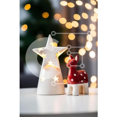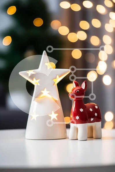 Υπάρχει δυνατότητα προσωποποίησης με δική σας φωτογραφία και προσαρμογής διαστάσεων κατόπιν παραγγελίας. Το συγεκεριμενο Puzzle 10x10 cm – 25 κομμ παρουσιαζει Αυτή η εικόνα δείχνει ένα τραπέζι διακοσμημένο για την περίοδο των γιορτών. Διαθέτει δύο μικρά ειδώλια, το ένα από τα οποία έχει σχήμα διακοσμητικού ελαφιού. Στο βάθος διακρίνονται αρκετά φώτα που δημιουργούν μια γιορτινή ατμόσφαιρα. Η σκηνή