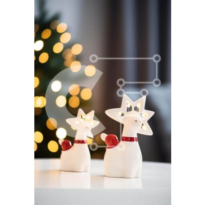 Υπάρχει δυνατότητα προσωποποίησης με δική σας φωτογραφία και προσαρμογής διαστάσεων κατόπιν παραγγελίας. Το συγεκεριμενο Puzzle 10x10 cm – 25 κομμ παρουσιαζει Αυτή η εικόνα παρουσιάζει δύο λευκά ειδώλια ταράνδων τοποθετημένα σε ένα τραπέζι μπροστά από ένα σχολαστικά στολισμένο χριστουγεννιάτικο δέντρο. Τα ειδώλια χρησιμεύουν ως διακοσμητικές πινελιές, που ενδεχομένως χρησιμοποιούνται ως δώρα ή στο