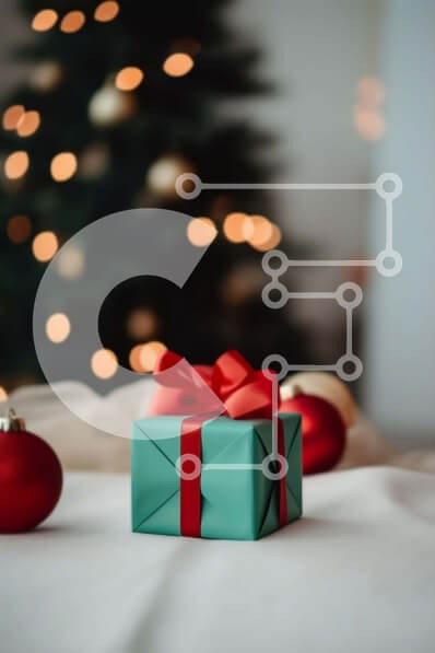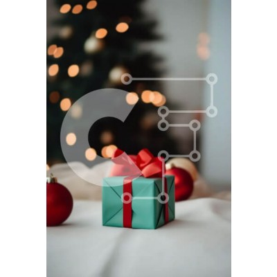 Υπάρχει δυνατότητα προσωποποίησης με δική σας φωτογραφία και προσαρμογής διαστάσεων κατόπιν παραγγελίας. Το συγεκεριμενο Puzzle 10x10 cm – 25 κομμ παρουσιαζει Αυτή η εικόνα απεικονίζει ένα πράσινο κουτί δώρου τοποθετημένο σε ένα τραπέζι μπροστά από ένα διακοσμημένο χριστουγεννιάτικο δέντρο. Το κουτί είναι στολισμένο με μια κόκκινη κορδέλα, που δείχνει ότι είναι πιθανό ένα τυλιγμένο δώρο. Η σκηνή π