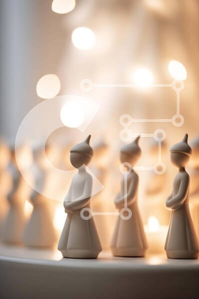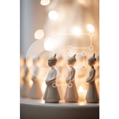 Υπάρχει δυνατότητα προσωποποίησης με δική σας φωτογραφία και προσαρμογής διαστάσεων κατόπιν παραγγελίας. Το συγεκεριμενο Puzzle 10x10 cm – 25 κομμ παρουσιαζει Αυτή η εικόνα παρουσιάζει μια ομάδα μικρών ειδωλίων τοποθετημένα στην κορυφή ενός διακοσμημένου πιάτου. Τα ειδώλια τοποθετούνται σε διάφορες θέσεις, συμβολίζοντας διαφορετικές γιορτές ή γιορτές. Το τραπέζι φωτίζεται με φώτα, δημιουργώντας μι
