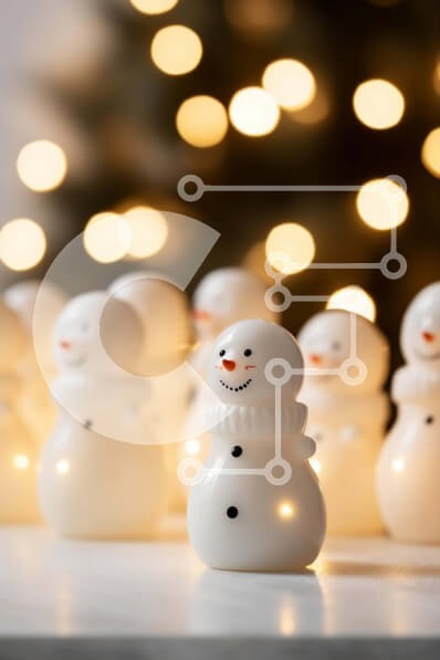 Υπάρχει δυνατότητα προσωποποίησης με δική σας φωτογραφία και προσαρμογής διαστάσεων κατόπιν παραγγελίας. Το συγεκεριμενο Puzzle 10x10 cm – 25 κομμ παρουσιαζει Αυτή η εικόνα παρουσιάζει μια ομάδα από λευκά ειδώλια χιονάνθρωπους που κάθονται σε ένα τραπέζι μπροστά από ένα φωτισμένο χριστουγεννιάτικο δέντρο. Η εορταστική ατμόσφαιρα ενισχύεται από τα διάσπαρτα φώτα σε όλη τη σκηνή. Οι φιγούρες του χιο