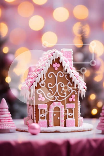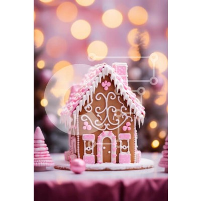 Υπάρχει δυνατότητα προσωποποίησης με δική σας φωτογραφία και προσαρμογής διαστάσεων κατόπιν παραγγελίας. Το συγεκεριμενο Puzzle 10x10 cm – 25 κομμ παρουσιαζει Αυτή η εικόνα παρουσιάζει ένα σπίτι με μελόψωμο διακοσμημένο με ροζ και λευκά στολίδια. Τοποθετείται σε ένα τραπέζι μπροστά από πολλά χριστουγεννιάτικα δέντρα, δημιουργώντας μια εορταστική ατμόσφαιρα. Το τραπέζι έχει επίσης διάσπαρτα μικρά κ