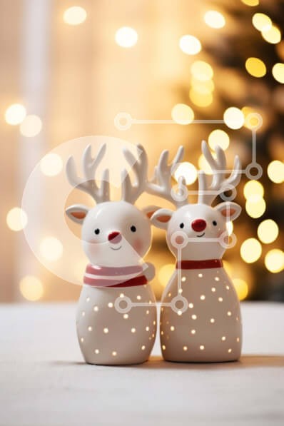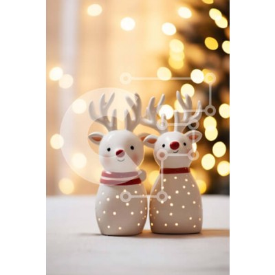 Υπάρχει δυνατότητα προσωποποίησης με δική σας φωτογραφία και προσαρμογής διαστάσεων κατόπιν παραγγελίας. Το συγεκεριμενο Puzzle 10x10 cm – 25 κομμ παρουσιαζει Αυτή η εικόνα παρουσιάζει δύο κεραμικά ειδώλια ταράνδων ντυμένα με κόκκινα και λευκά ρούχα. Κάθονται σε ένα τραπέζι μπροστά σε ένα φωτισμένο φόντο, δημιουργώντας μια εορταστική ατμόσφαιρα. Τα ειδώλια ταράνδων αποτελούν μια τέλεια διακόσμηση
