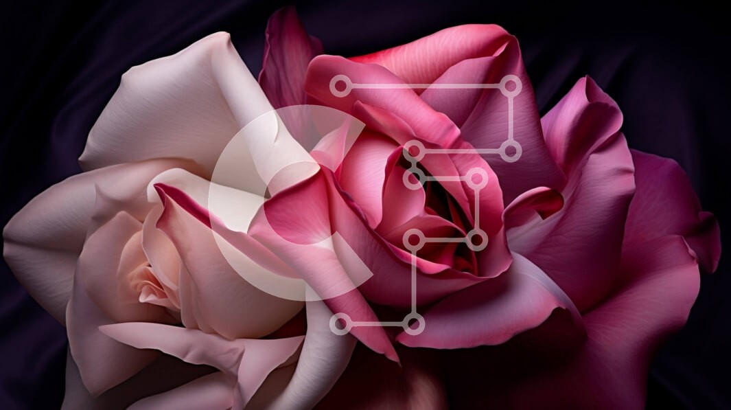 Υπάρχει δυνατότητα προσωποποίησης με δική σας φωτογραφία και προσαρμογής διαστάσεων κατόπιν παραγγελίας. Το συγεκεριμενο puzzle παρουσιαζει Αυτή η εικόνα παρουσιάζει μια κοντινή άποψη δύο ροζ και λευκών τριαντάφυλλων τοποθετημένων το ένα δίπλα στο άλλο. Τα τριαντάφυλλα είναι σε πλήρη άνθιση με τα πέταλά τους ντελικάτα τοποθετημένα, δημιουργώντας μια οπτικά ελκυστική σύνθεση. Το μαύρο φόντο ενισχύει τα ζωηρά χρώματ